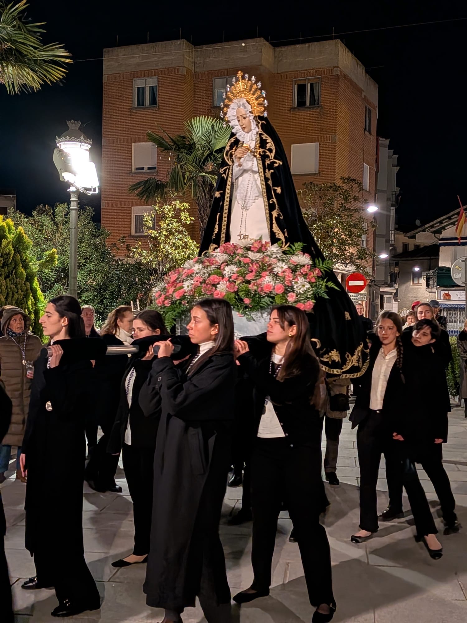 Al finalizar la Santa Misa, un grupo de 30 señoras han sido admitidas en la Hermandad de Damas de la Dolorosa, recibiendo la medalla. A continuación hemos salido en procesión con la imagen de la Virgen por las calles del pueblo.